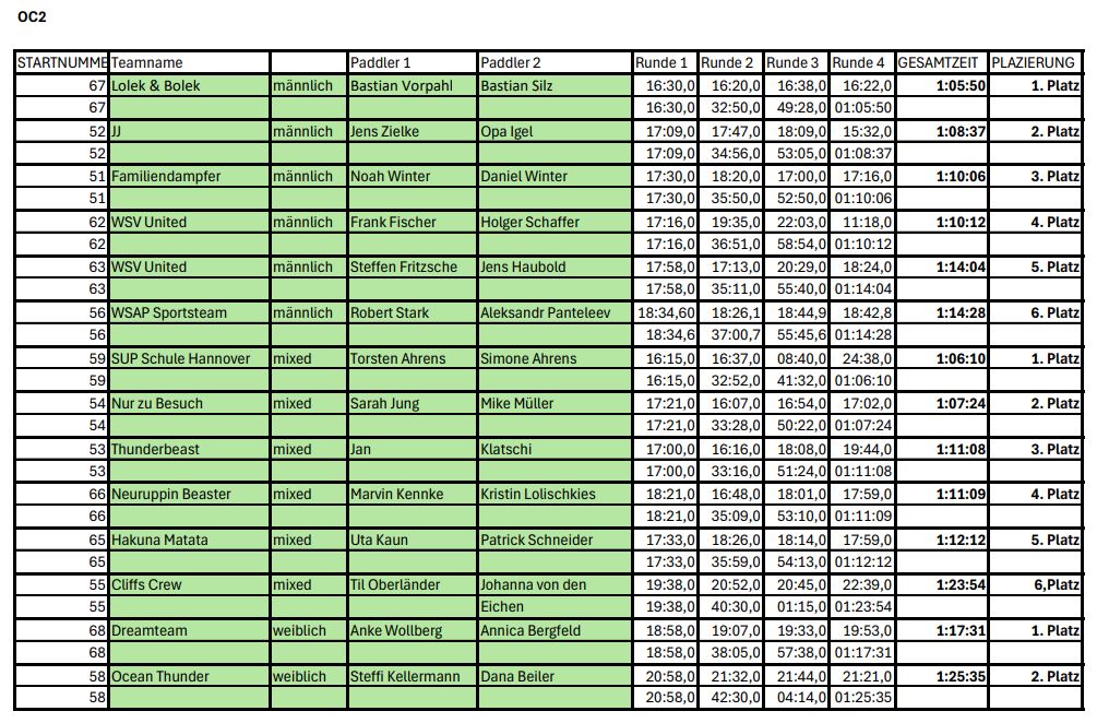 Und hier die Ergebnisse der Vereinsregatta (Gesamtergebnisse; Netto-Zeiten):