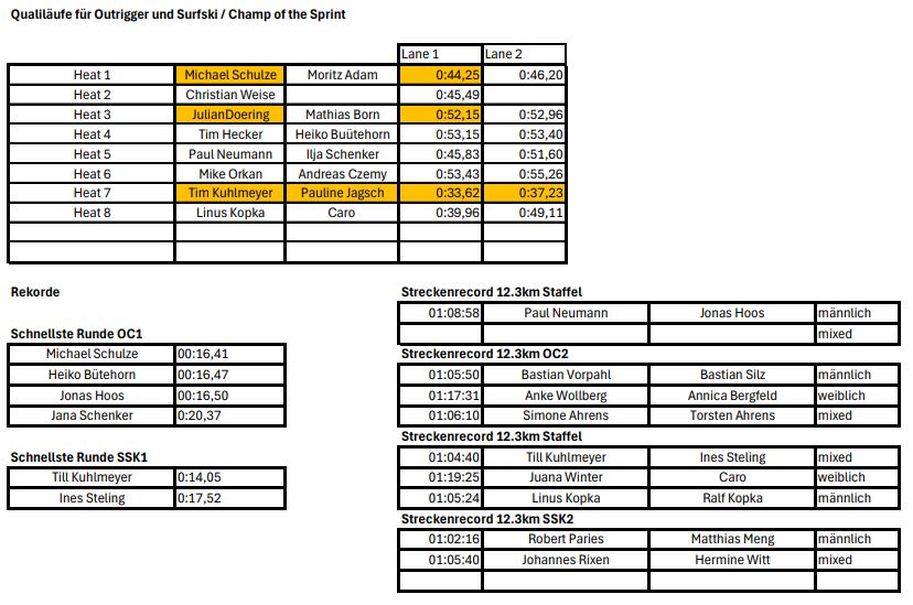 durften die OC1 Staffeln den 200m Sprint und damit die Startreihenfolge unter sich auf dem gleichen Kurs ausmachen.