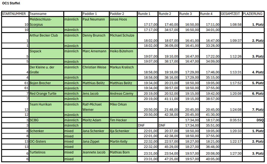 Mit 11 OC1 Staffelteams bildete die Gruppe ebenfalls ein großes Feld zusammen mit den SSK1 Teams.